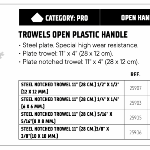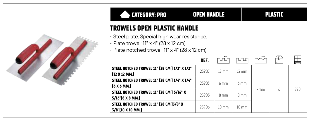 – รุ่น: Trowels & Notched Trowels – Open Plastic Handle Series