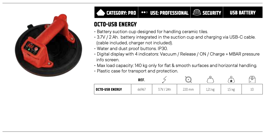 RUBI ตัวดูดยกกระเบื้องไฟฟ้า OCTO-USB