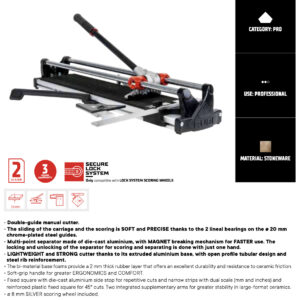 – ประเภท: แท่นตัดกระเบื้องแมนนวล Professional Grade