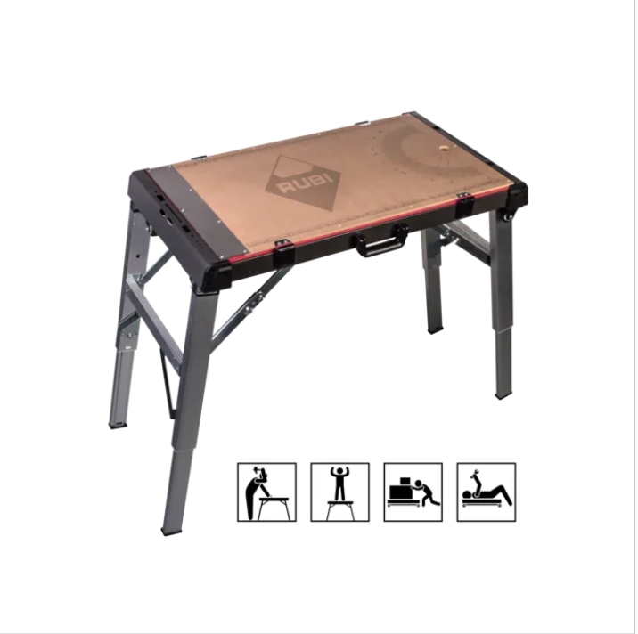 – พื้นโต๊ะสองด้าน: ด้านไม้ MDF สำหรับงานทั่วไป และด้านพลาสติกกันลื่น (PP) สำหรับงานเปียกหรือสภาพแวดล้อมภายนอก